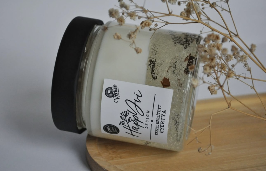 Minden gyertyánk egyedileg kézzel készült 100% vegán szójaviaszból, prémium minőségű illatolajok felhasználásával. A szójaviasz természetes, megújuló, növényi alapú anyag amely alacsonyabb hőmérsékleten ég mint más viaszok, így a szójagyertya akár kétszer hosszabb ideig éghet, ugyanakkor kevesebb korom és füst keletkezik használatukkor. Gyertyáinkhoz fakanócot használunk aminek különlegessége, hogy égés közben finom ropogó hangot hallat és ezzel fokozza a gyertya élményét. A ropogó, sercegő hang ideális társ a pihenéshez , a relaxáláshoz, vagy bármilyen énidő-tevékenységhez.