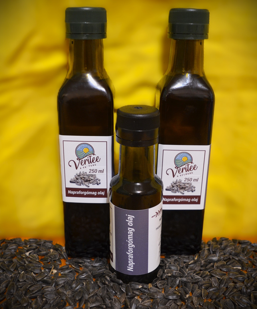 Hidegsajtolással készült, szűretlen napraforgo olaj.